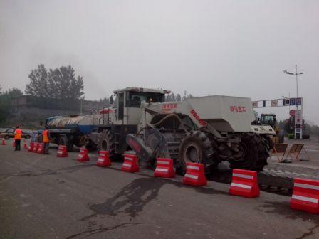 國道G108臨汾段今年開始冷再生大修施工,該路段為公路干線,路基及路面強(qiáng)度很高,其中部分路段,比如靠近收費(fèi)站的路段,經(jīng)過多次維修,采用了改性瀝青鋪設(shè)面層,路面強(qiáng)度很高,即使是進(jìn)口機(jī)械施工也不輕松,導(dǎo)致機(jī)器工作速度慢,刀具磨損損耗量明顯增大等。該路段共有六個(gè)標(biāo)段,施工的主要設(shè)備冷再生機(jī)以進(jìn)口品牌為主。由于工期緊張,先后有兩個(gè)標(biāo)段調(diào)用了我公司生產(chǎn)的600馬力WR2300E,WR2300L冷再生機(jī)。我公司冷再生機(jī)面對如此高強(qiáng)度路面冷再生,機(jī)器展示了國產(chǎn)機(jī)械的優(yōu)異性能,通過了考驗(yàn),贏得了施工方的認(rèn)可。參于施工的兩臺600馬力冷再生機(jī),均安裝了我公司自行生產(chǎn)的可拆卸刀庫重型轉(zhuǎn)子,很好地體現(xiàn)了可拆卸刀庫重型轉(zhuǎn)子在高強(qiáng)度冷再生施工中的適應(yīng)性。