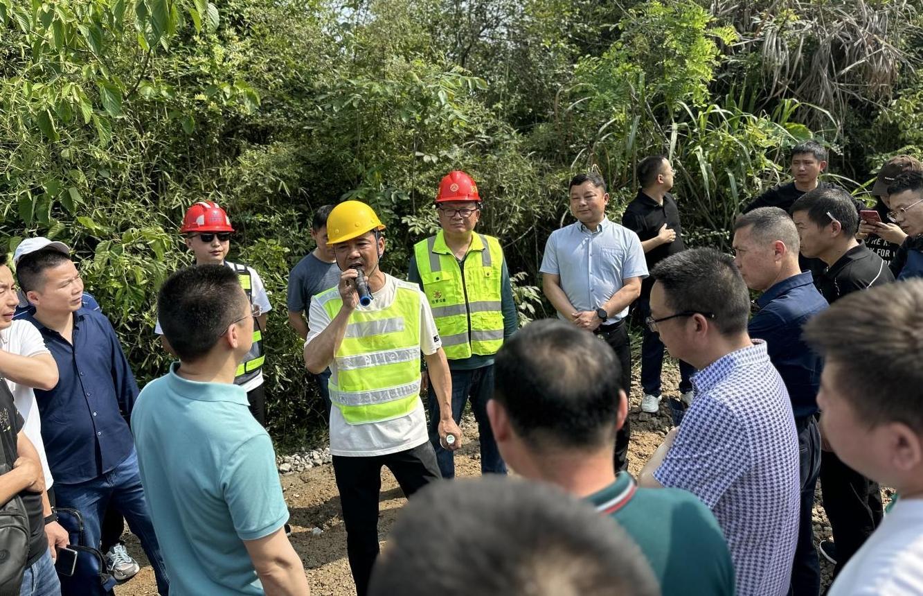 觀摩組在S508線路面改善工程施工現(xiàn)場(chǎng)了解舊水泥混凝土板全厚式就地冷再生工藝